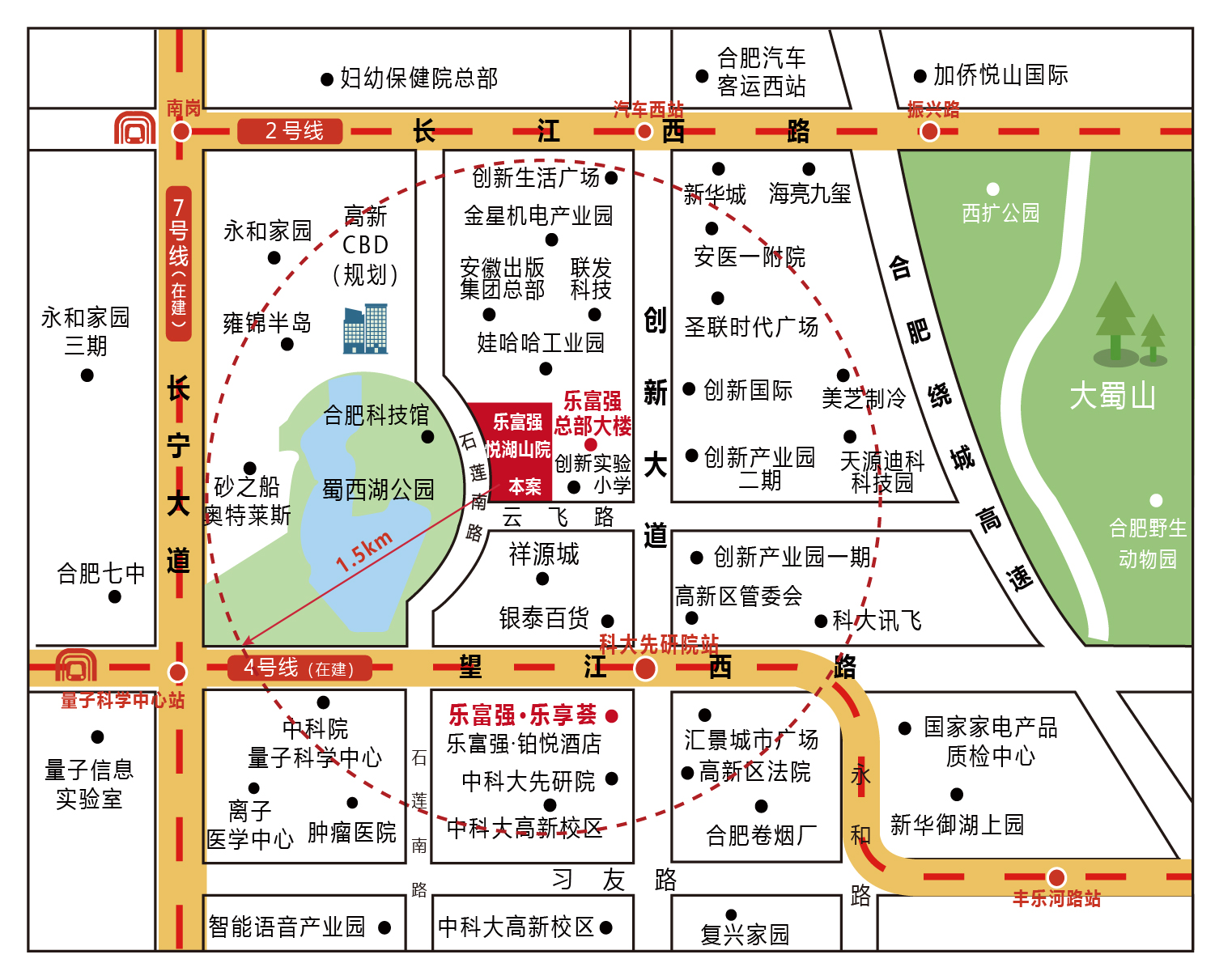 “樂鄰里生活中心”屬于樂富強(qiáng)·悅湖山院配套商業(yè),地處合肥高新區(qū)核心地段(云飛路與石蓮南路交口),緊鄰蜀西湖,坐擁一線湖景。地理位置優(yōu)越,交通便捷。政企單位、學(xué)校、住宅、公園、星級(jí)酒店等豐富配套環(huán)伺周邊,消費(fèi)力密集,商業(yè)發(fā)展?jié)摿o限。