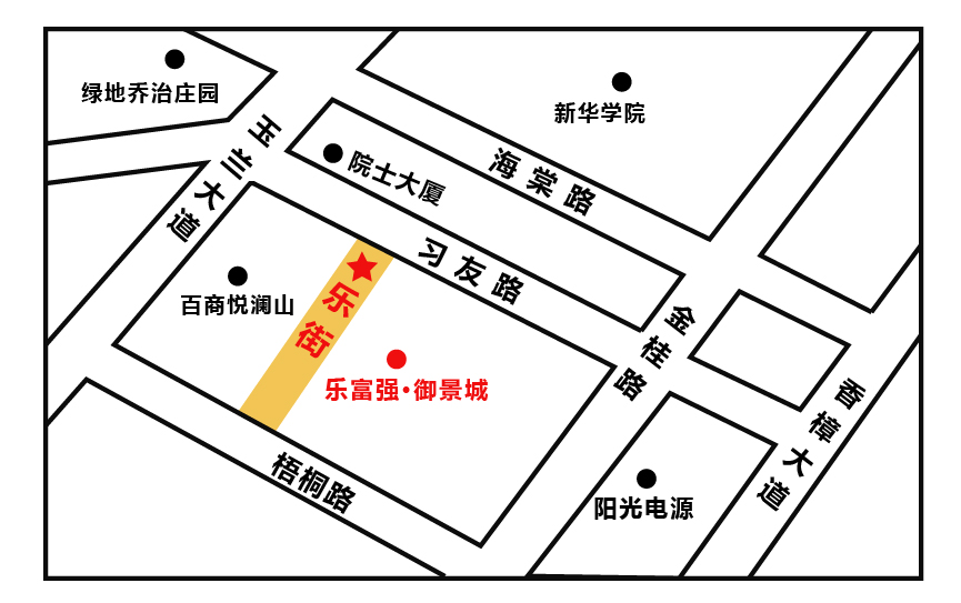 合肥御景城·樂街,作為樂街系列的首個開街項目,對于樂富強商業(yè)的發(fā)展具有啟程意義。它全長近300米,北至習友路,南至梧桐路,總商業(yè)面積約1.5萬方,已入駐的品牌商家有必勝客、詹記、巴莉甜甜、老鄉(xiāng)雞、瑞幸、錦荷里、魔都三兄弟、街頭湘尾等五十余戶,覆蓋餐飲美食、服裝零售、教育培訓、生活配套等豐富業(yè)態(tài),覆蓋周邊1.5公里范圍內(nèi)最核心社群,為鄰里提供了便利的生活休閑場所,更為高新片區(qū)居民處未來無限可能的城市商業(yè)新空間!