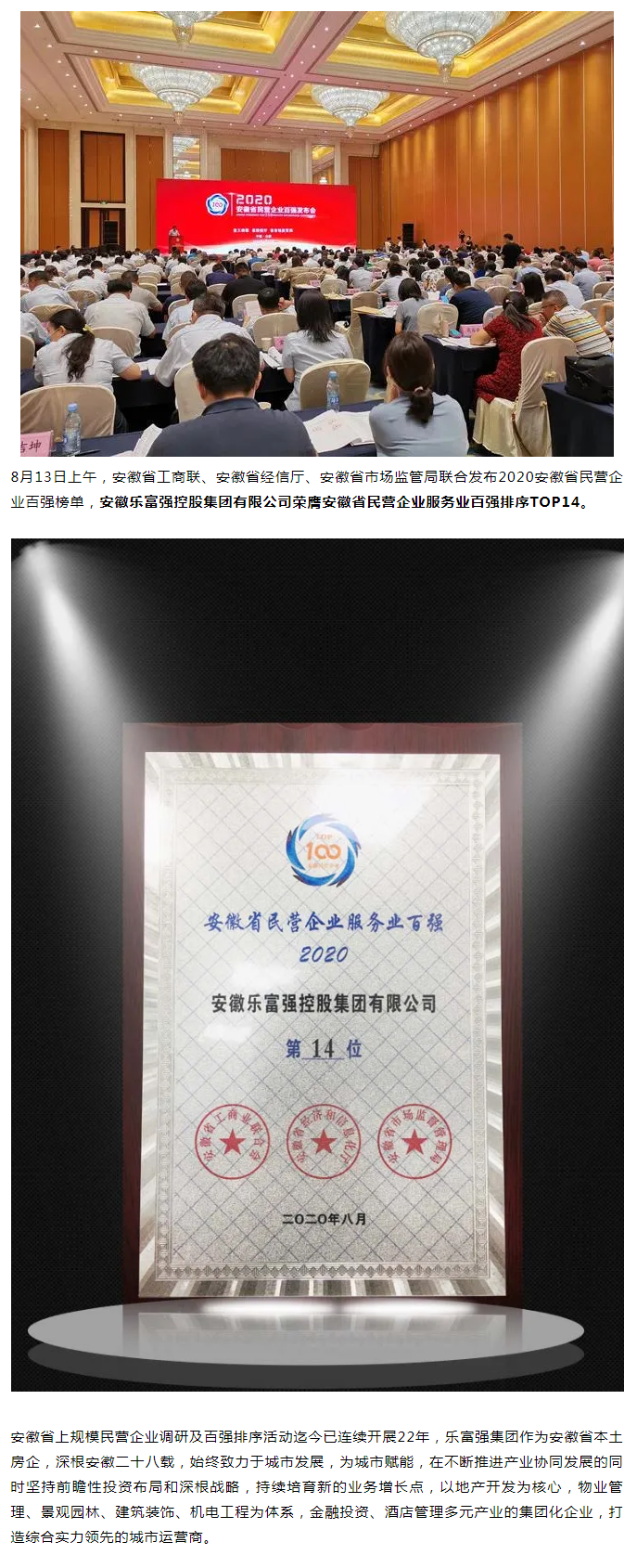樂富強集團榮膺2020安徽省民營企業(yè)服務業(yè)百強TOP14