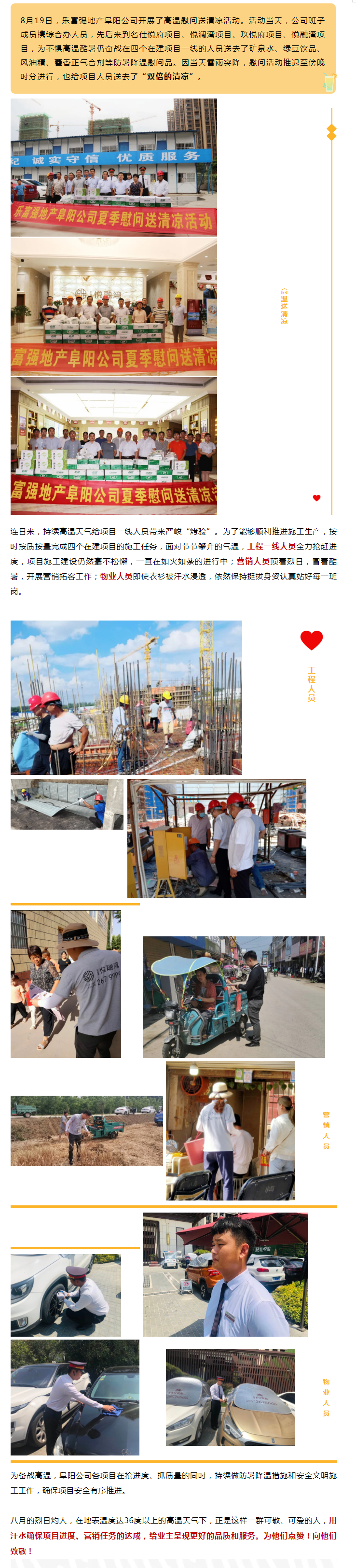 樂富強地產(chǎn)阜陽公司開展高溫慰問送清涼活動
