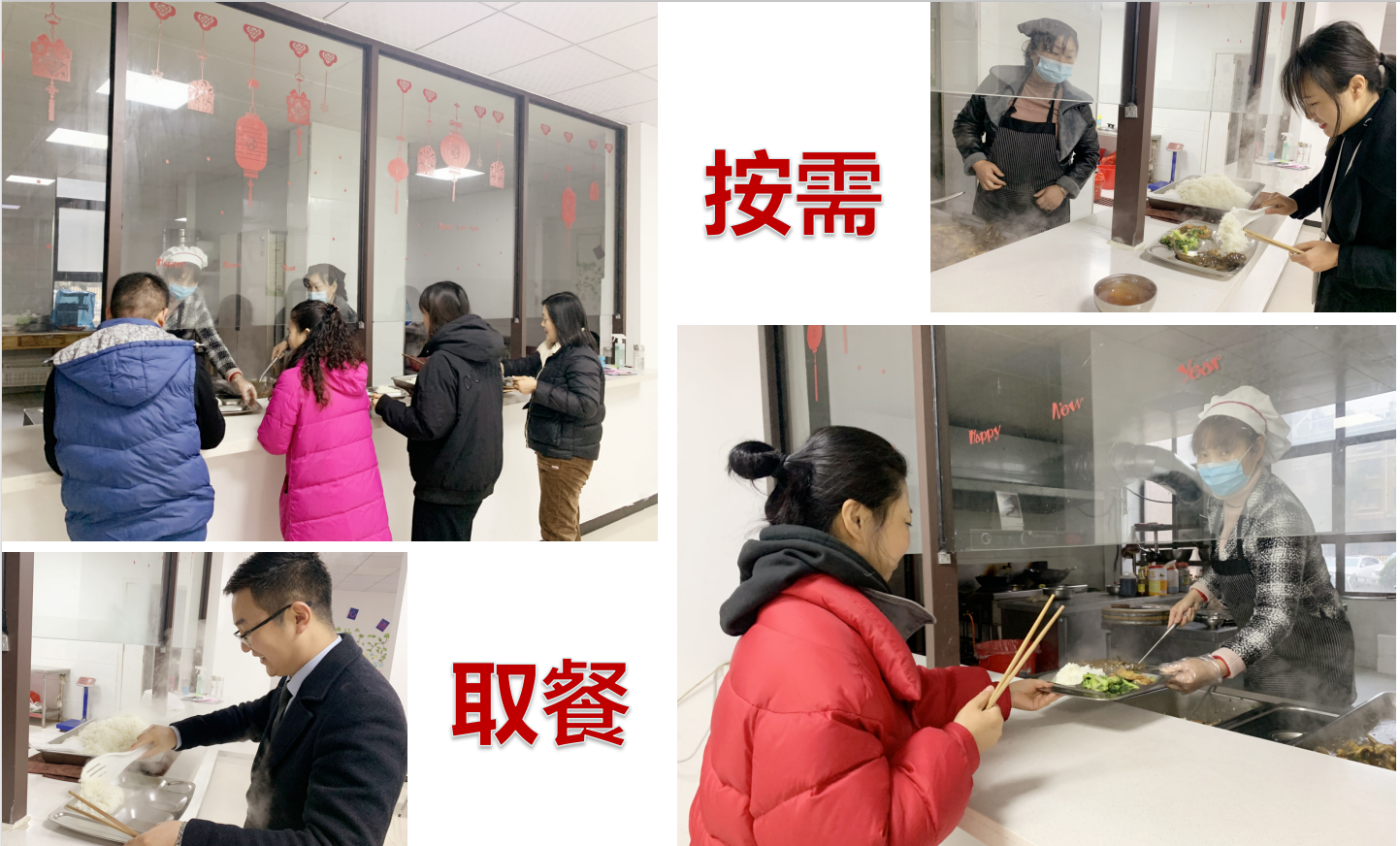 隨著食堂用餐高峰來臨,在打飯窗口,不少員工主動提出少打一點菜的需求。打菜窗口按照少取勤添的原則,菜量可按照自己的喜好和食量,吃多少打多少,不夠再添,做到餐后人人“光盤”。