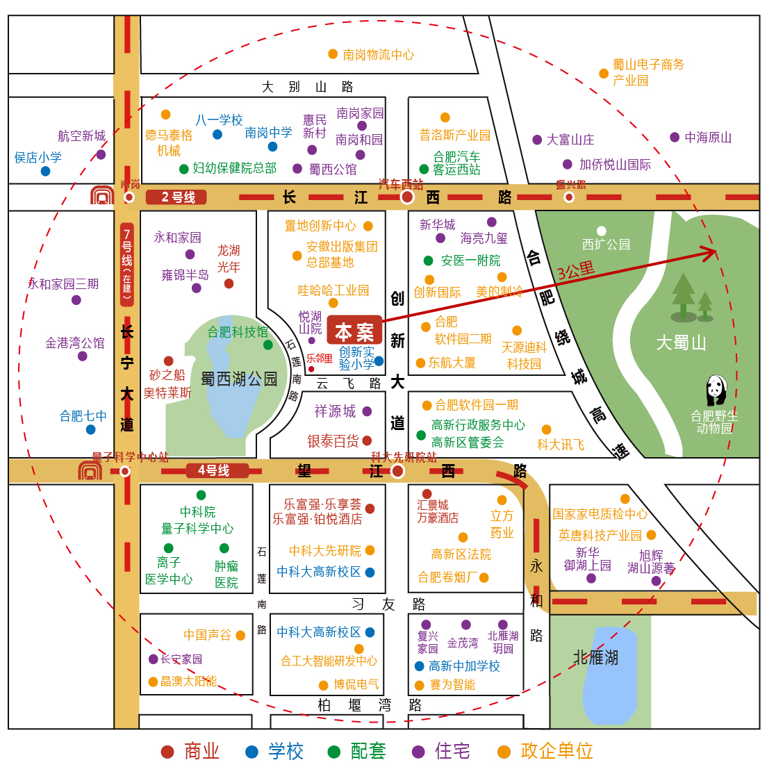 項(xiàng)目位于合肥高新區(qū)創(chuàng)新大道與霞光路交匯處,屬于政府重點(diǎn)打造蜀西湖CBD板塊,坐擁一線湖景,地理位置優(yōu)越,交通便捷,辦公及住宅人口密集,政企/科研單位、學(xué)校、星級(jí)酒店、住宅等豐富配套環(huán)伺周邊,高知氛圍濃厚。